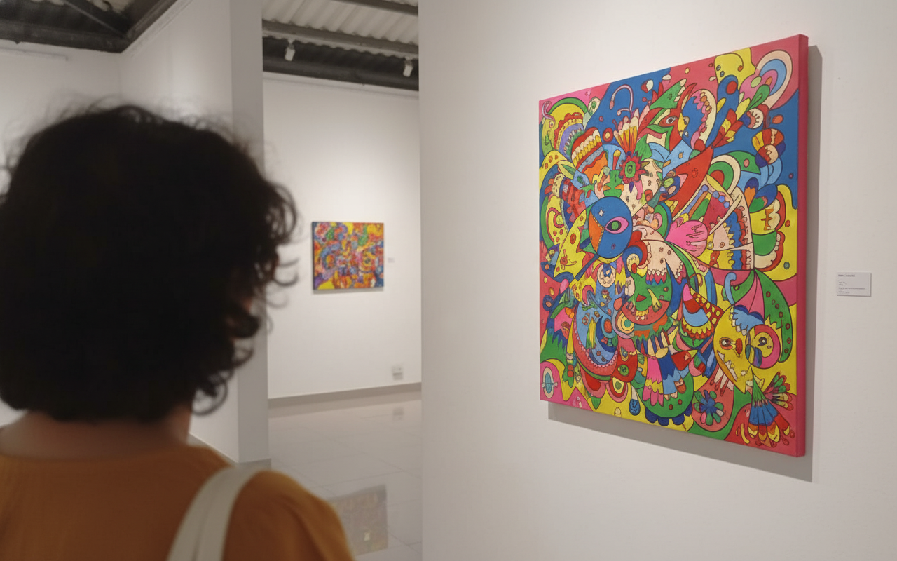 Jika UV menawarkan keajaiban, maka cahaya normal menawarkan kejujuran. Saat lampu galeri menyala terang, karya-karya Daniel memperlihatkan struktur aslinya: garis tebal yang matang, komposisi yang tertata, dan bentuk-bentuk yang tampak lahir dari spontanitas yang terkontrol. Pada titik inilah terlihat jelas bahwa karya-karya tersebut berada dalam tradisi seni naif (naïve art)—sebuah tradisi yang merayakan kejujuran visual dan penolakan terhadap pretensi.
